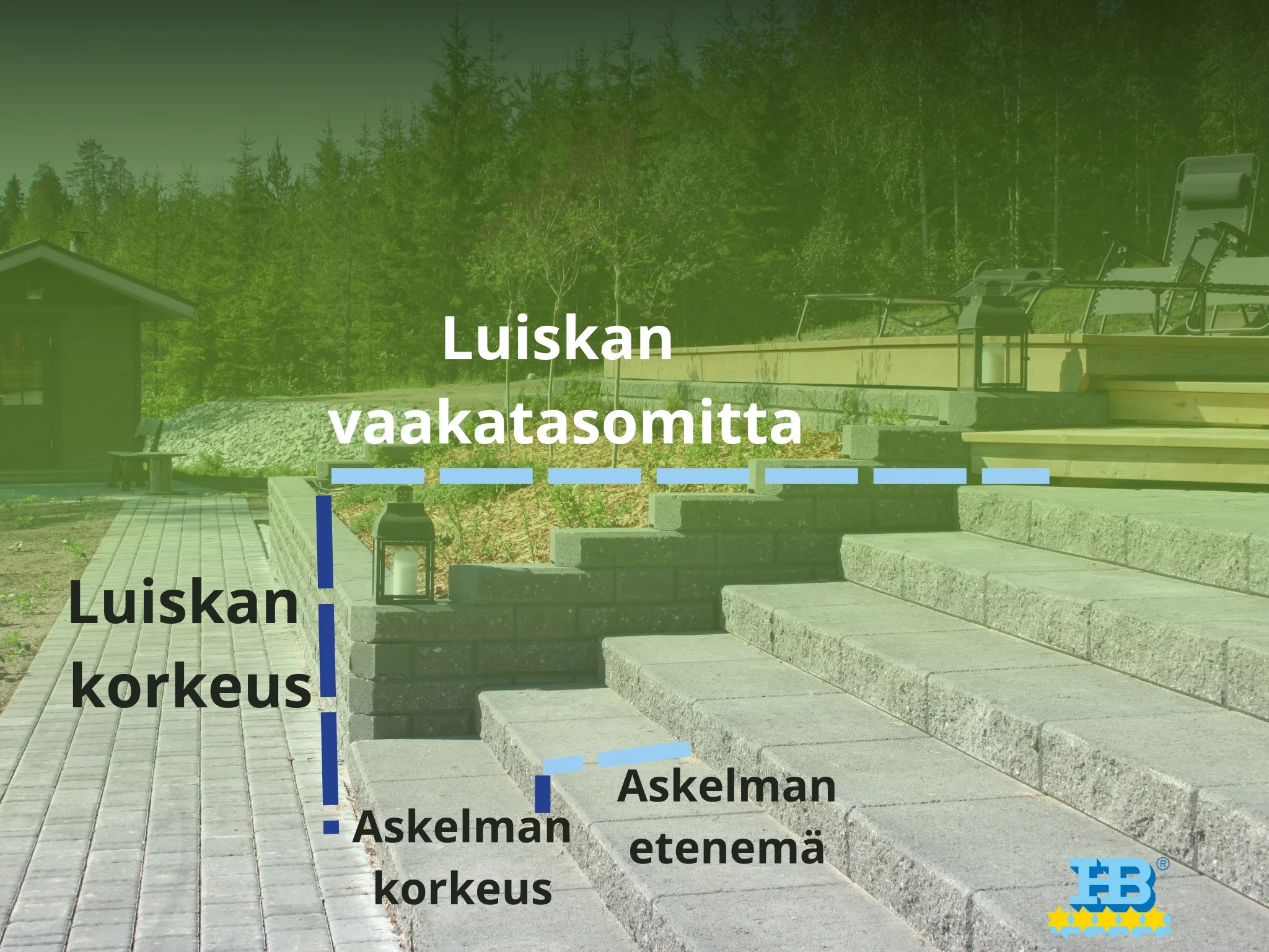 Portaiden mitoitukseen ja tarvittavan porraskivimäärän laskemiseen voit käyttää esimerkiksi seuraavaa tapaa: