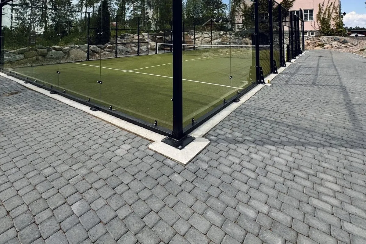 Metropolis Oy kohtasi mielenkiintoisen haasteen suunnitellessaan padelkenttää vuonna 1928 rakennetun pihapiirin yhteyteen. Projektin keskeisenä tavoitteena oli säilyttää alueen perinteinen ilme ja arvokas tunnelma, minkä takia asfalttipohjan sijasta päädyttiin käyttämään pihakivetystä, joka istuisi saumattomasti pihapiirin perinteiseen tyyliin.